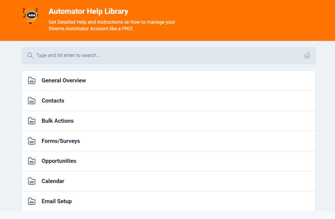 The Xtreme Automator is an amazing one-of-a-kind software we created to help business owners automate their sales and marketing. To help you navigate such amazing software we have spent months creating a vast library of helpful articles and tutorials, the Automator Help Library. You and your team will have access to the library 24/7 whenever you need it.